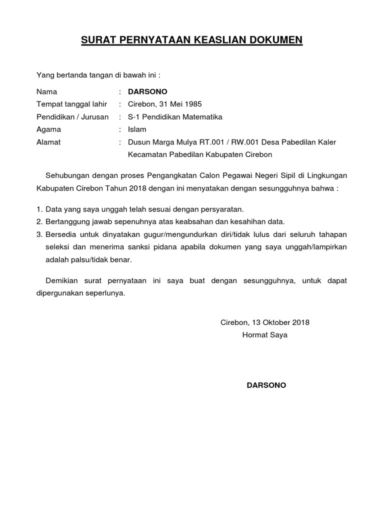 Surat pernyataann kebenaran data dan keabsahan dokumen untuk mahasiswa baru guru keywords. Contoh format surat pernyataan keabsahan dan kebenaran dokumen. Surat pernyataan keabsahan dan kebenaran dokumensurat pernyataan#suratpernyataan#suratpernyataankeabsahandankebenarandokumen#suratsuratpenting. Berikut ini adalah contoh surat pernyataan keaslian dokumen yang terkadang kita perlukan dalam berbagai kesempatan. Oleh mahez 26 jul, 2019 posting komentar.